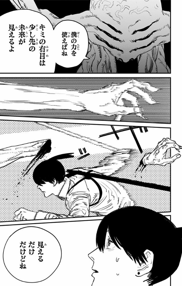 かつて姫野が使役していた悪魔と対峙するアキ。復讐の炎に身を焦がす男の脳裏を過るのは…!? 一方、デンジは再びサムライソードと激突!! チェンソーvs刀、血飛沫舞う死闘の行方は果たして!? デンジの心臓争奪戦は、想定外の方向へと加速する!!