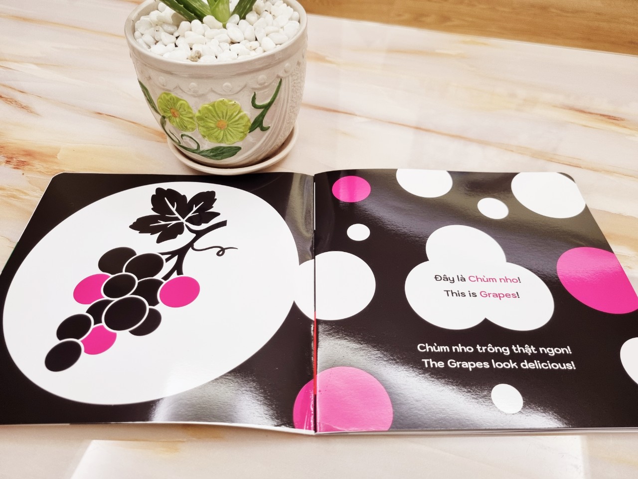 Bộ Ehon kích thích thị giác với 2 tông màu đen – trắng chủ đạo, kết hợp cùng với những sắc màu rực rỡ khác sẽ kích thích phát triển thị giác cho bé, đồng thời giúp bé phát triển nhận thức về thế giới xung quanh, mở rộng vốn từ tiếng Việt, nâng cao khả năng ghi nhớ vốn từ tiếng Anh.