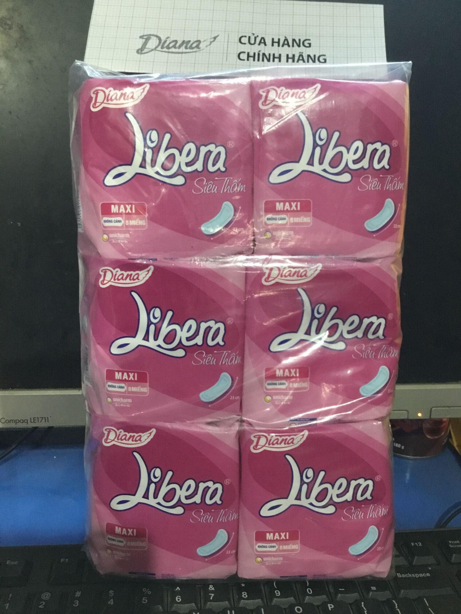Combo 6 Gói Băng Vệ Sinh Diana Libera Siêu Thấm Maxi Không Cánh (Libera Dày Không Cánh)23cm-8 Miếng/Gói -Date luôn mới