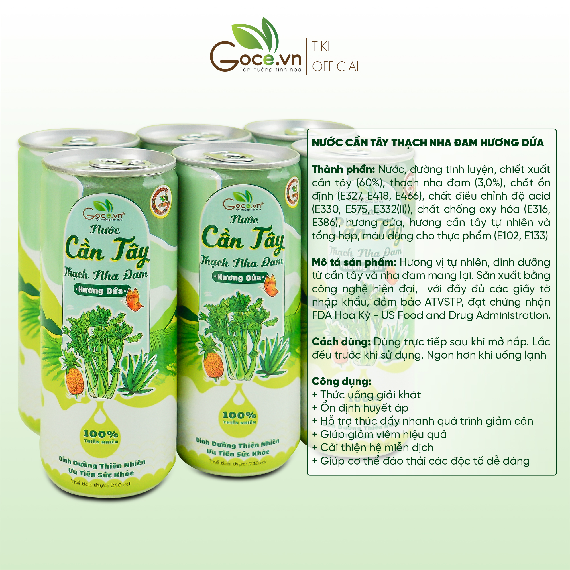 ✨1 Lốc (6 Lon) - Nước cần tây thạch nha đam hương dứa Goce - 240ml