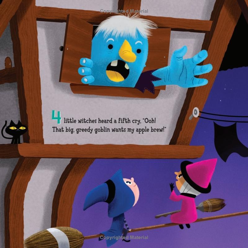 Young readers will want to fly the night sky with the ten little witches in this bright and adventurous Halloween story. Whether zooming past rattling skeletons, buzzing by pie-stealing mummies, or soaring over a werewolf with bad breath, this exciting group of witches and their high-flying Halloween adventures will have readers cheering! Plus, play a game of I Spy and find the cat and owl on every page!