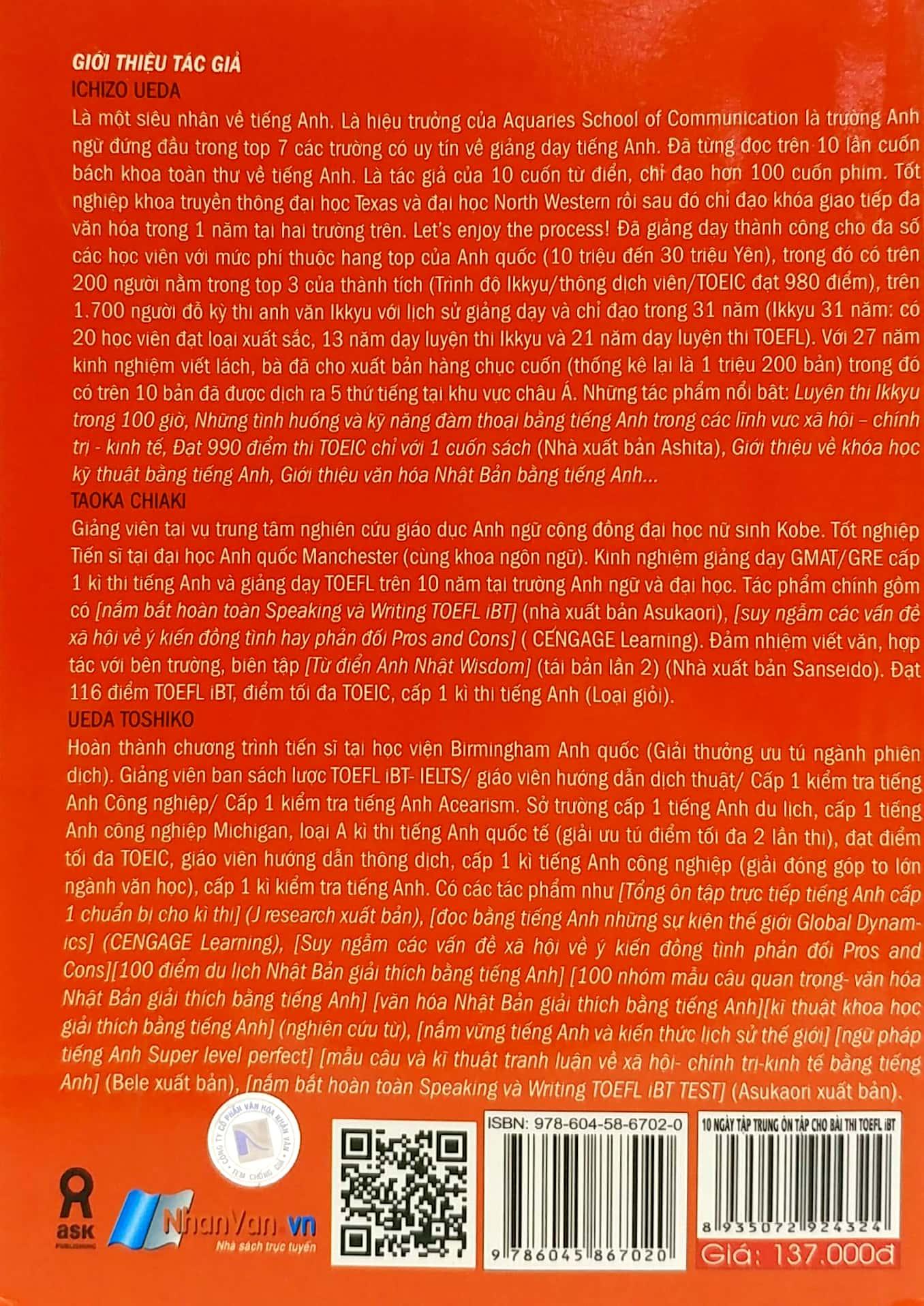 10 Ngày Tập Trung Ôn Tập Cho Bài Thi Toefl iBT (Kèm CD) Để cải thiện năng lực tiếng Anh của người Việt và điểm số TOEFL trong khoảng thời gian ngắn nhất, quyển sách