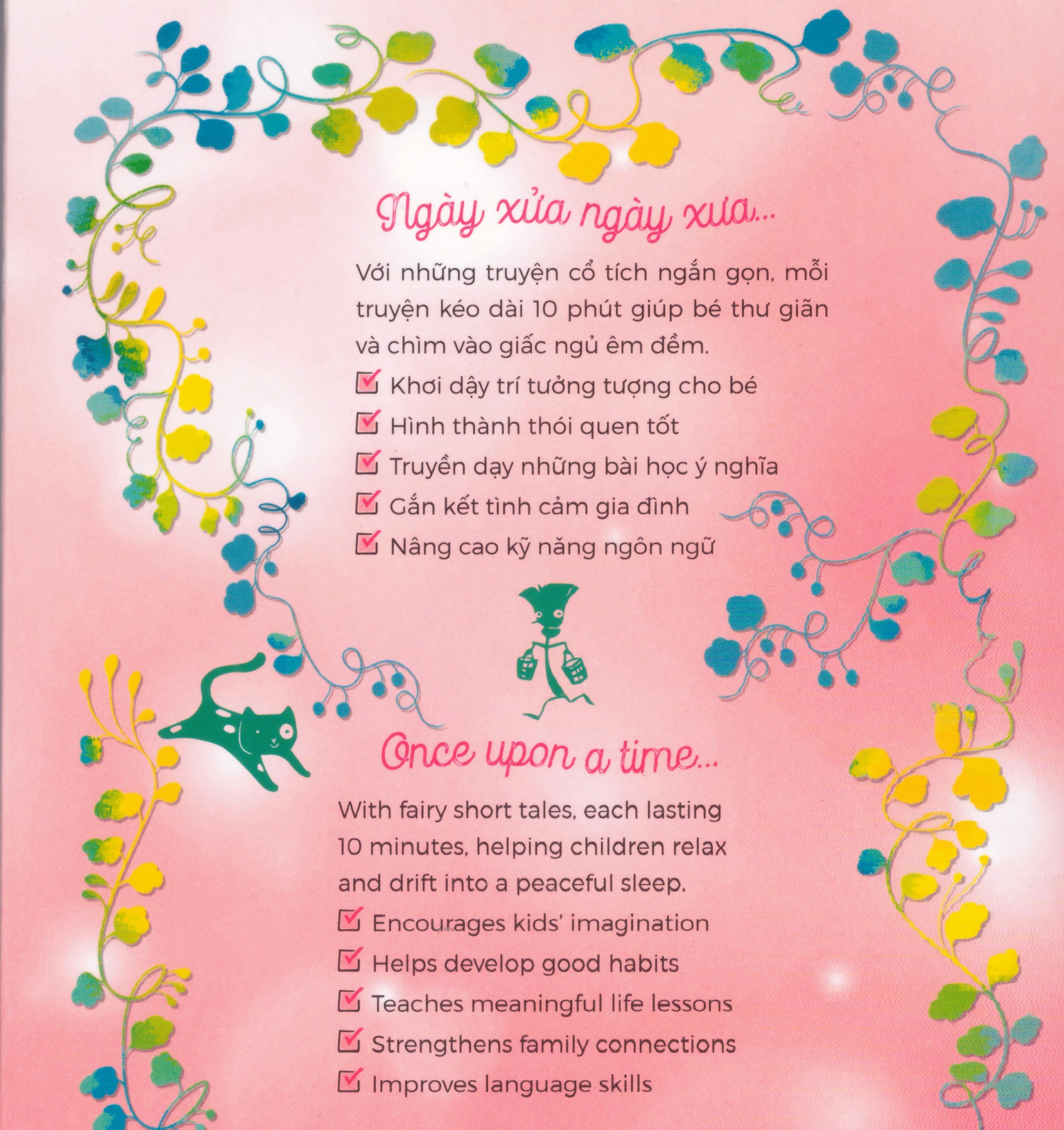 Từ những nàng công chúa bị phù phép đến những sinh vật thần kỳ, các câu chuyện trong cuốn sách như một tấm vé đưa bé bước vào thế giới nhiệm màu – nơi trí tưởng tượng được bay cao, và giấc ngủ cũng trở nên ngọt ngào hơn bao giờ hết.