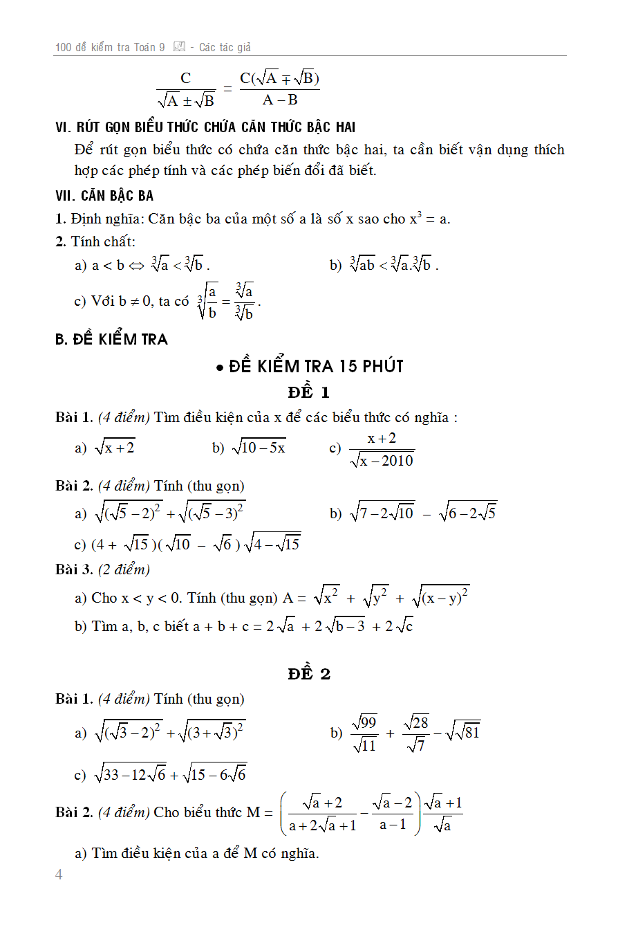 ✨100 ĐỀ KIỂM TRA TOÁN 9 - NGUYỄN ĐỨC TẤN - KV