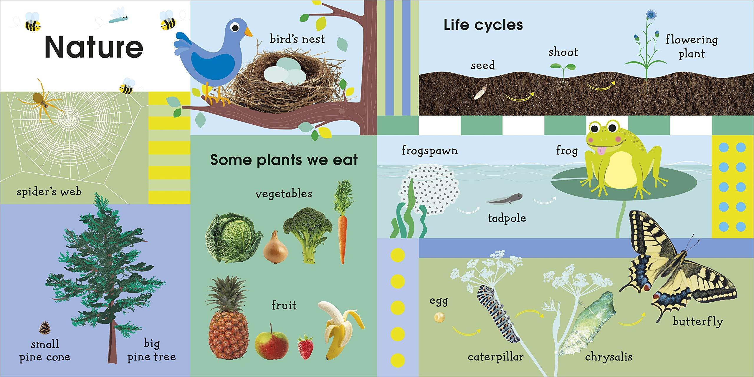 Help your little one learn important vocabulary and build knowledge with this first word and picture book. Cleverly designed to inform and entertain, 100 First Things to Know takes your little one on an exciting learning adventure. As they point to the pictures and say the words, children can soon recognise colours, shapes, and patterns, count to 10, learn about life cycles, and name weathers and seasons. They will also be introduced to words from the worlds of art, music, maths, and science.