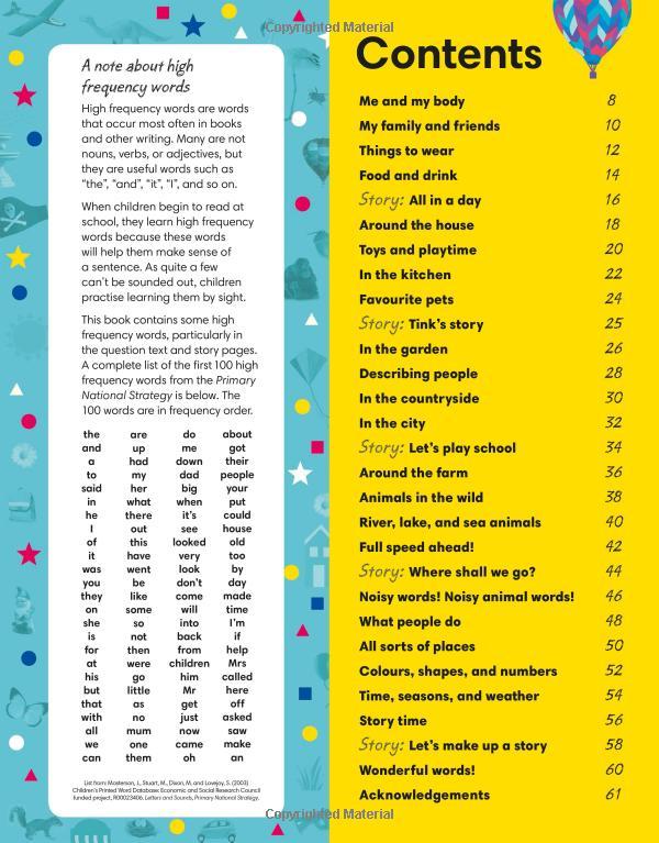 1000 Useful Words clearly labels each picture, which encourages picture-and-word association and helps early reading, and each topic features questions that ask children to find things on the page or that stimulate thinking, talking, and early creative writing skills. The words have been chosen with the help of a leading educational consultant, Penny Coltman, and include lots of useful nouns, plus some interesting adjectives, and common verbs.