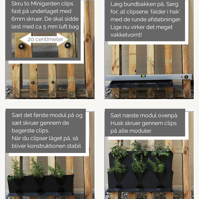 (Nếu Khung Module cao trên 5 tầng thì gia cố thêm 2 vít nhỏ vào tường để ngăn gió mạnh làm ngã vườn tường (có sẵn))
