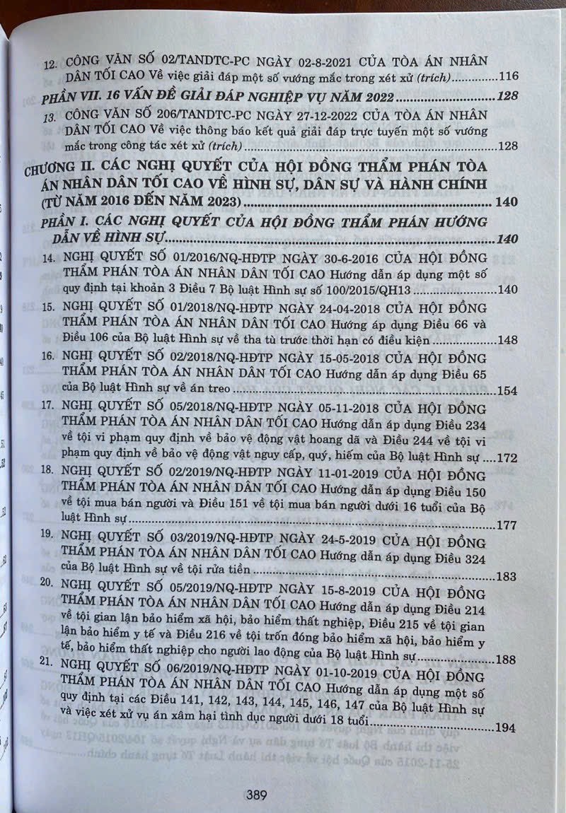 Giải đáp vướng mắc trong xét xử về Dân sự, Hình sự, Tố tụng dân sự Hành chính, Kinh doanh thương mại của Tòa án nhân dân tối cao từ năm 2016 - 2021 và