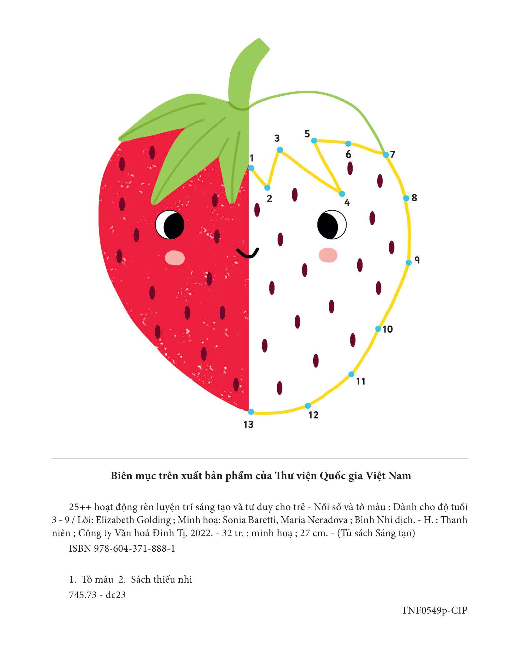Mua tại TiktokTrong cuốn sách này có hơn 25 bức tranh chưa hoàn chỉnh với các chấm tròn được đánh số thứ tự. Em hãy nối các số đó lại với nhau để hoàn thiện những bức tranh rồi tô màu cho chúng theo ý muốn của mình nhé! Hoạt động thú vị này sẽ giúp em rèn luyện tư duy cùng khả năng iều khiển bút, phối hợp tay - mắt, đồng thời còn phát huy trí tưởng tượng và óc sáng tạo của em nữa ấy.