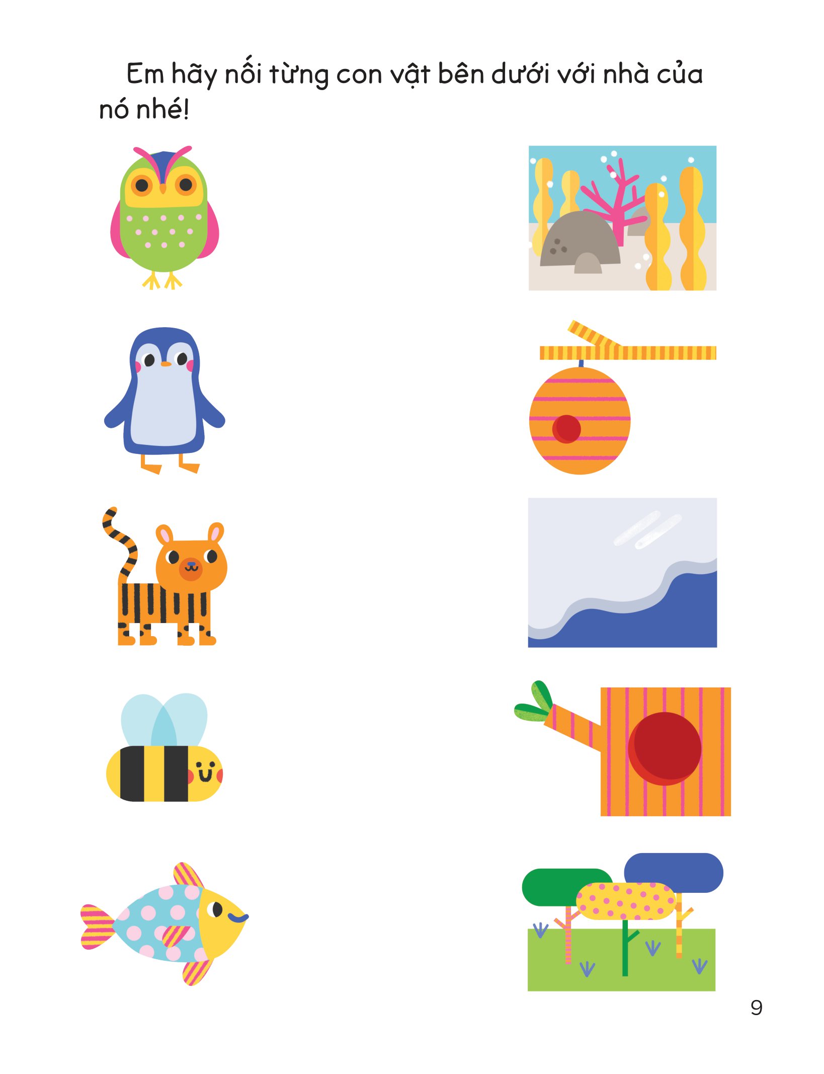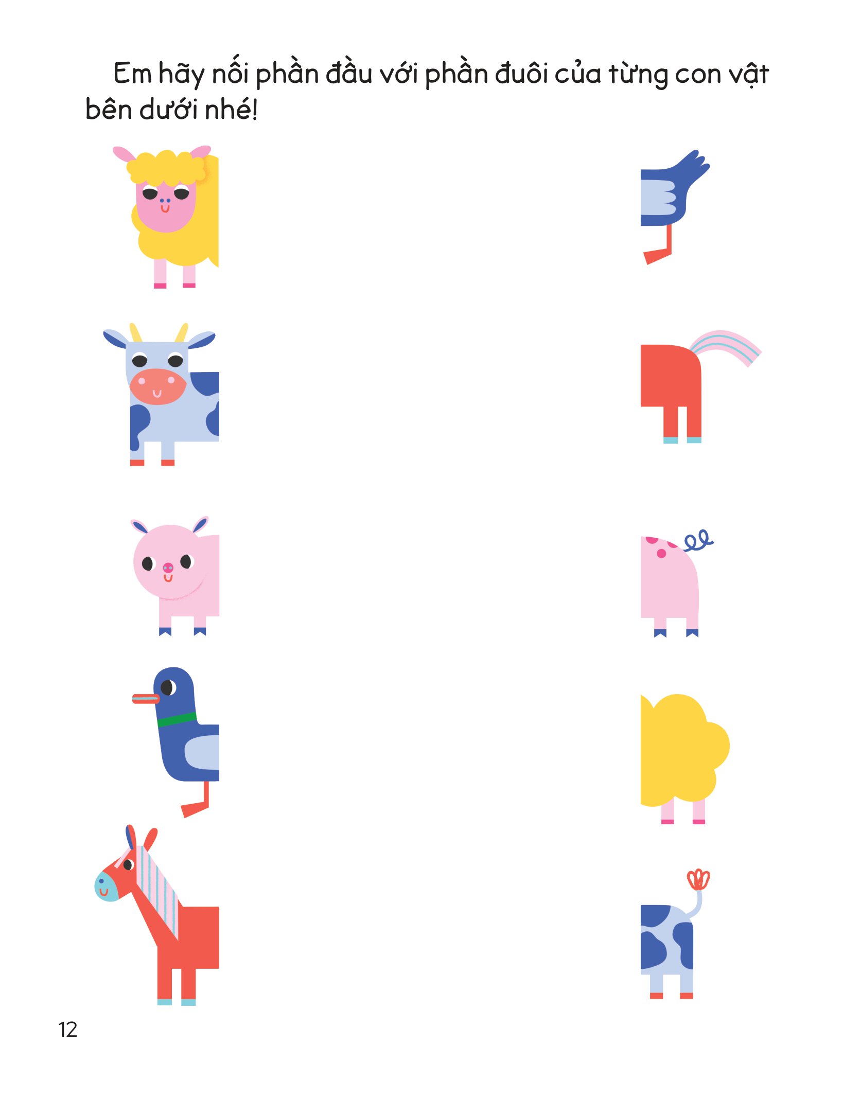 Đồng thời, các hoạt động trong sách cũng kích thích trí não của em, giúp em phát triển nhận thức thị giác, kỹ năng vận động tinh và sự phối hợp tay-mắt đấy.
