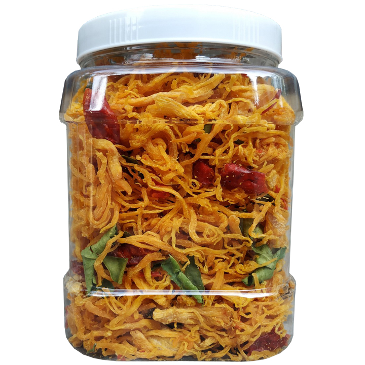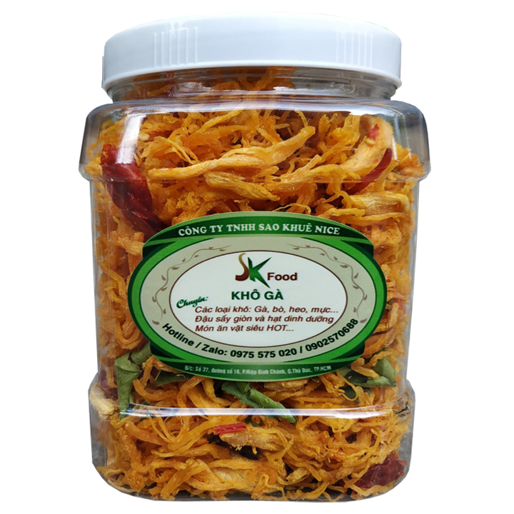 KHÔ GÀ XÉ LÁ CHANH THƯỢNG HẠNG Xuất xứ: Việt Nam. Hạn sử dụng: 12 tháng kể từ ngày sản xuất. Quy cách đóng gói: hủ nhựa pet cao cấp Khô gà lá chanh