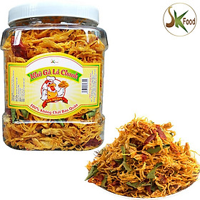 Xuất xứ: Việt Nam. HSD: 6 tháng từ ngày sản xuất. Quy cách: Hũ 500G. Khô gà xé lá chanh thơm ngon, có thể dùng trực tiếp như mồi nhậu hoặc ăn kèm với