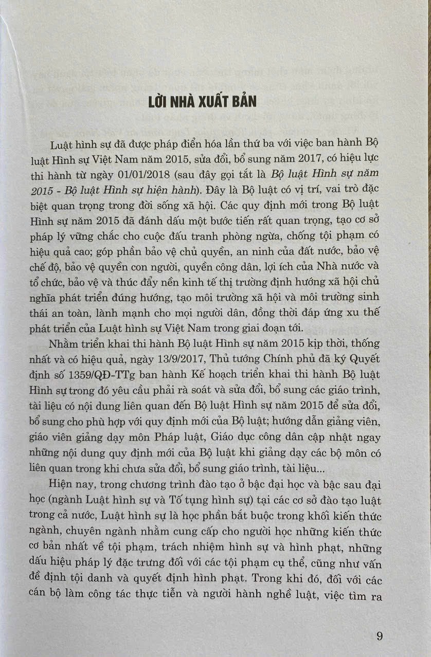 Giới thiệu sách: BÌNH LUẬN KHOA HỌC PHẦN CÁC TỘI PHẠM BỘ LUẬT HÌNH SỰ NĂM 2015 đã được sửa đổi năm 2017 BÌNH LUẬN KHOA HỌC PHẦN CÁC TỘI PHẠM BỘ LUẬT HÌNH SỰ NĂM