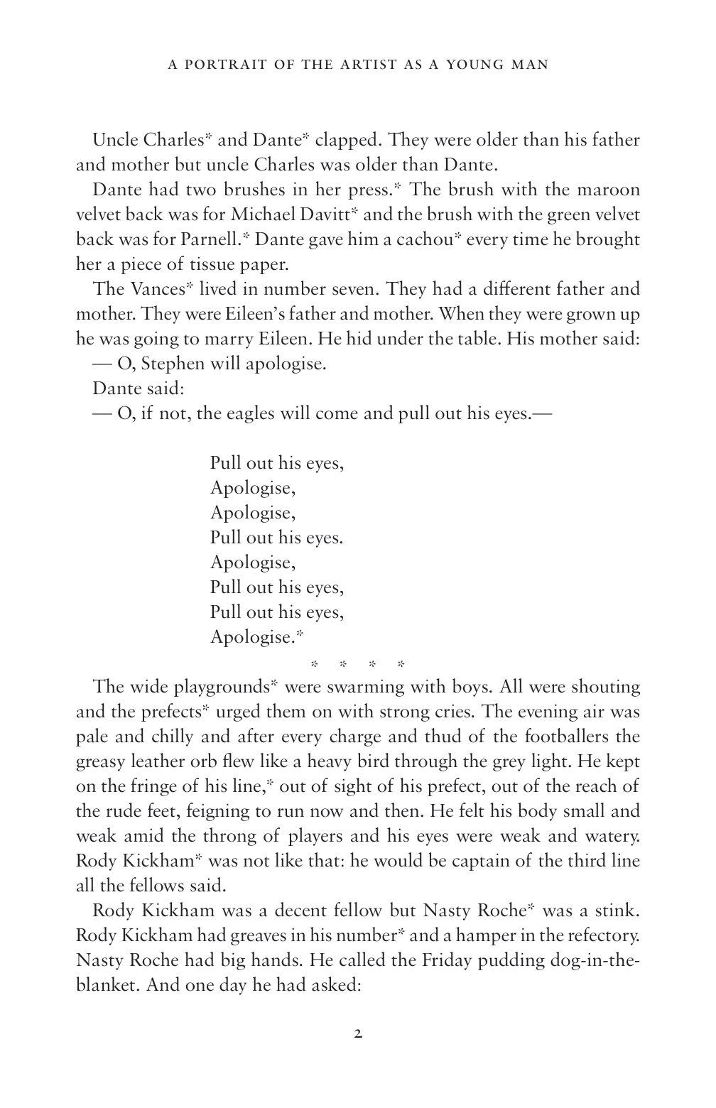 James Joyce's first novel, A Portrait of the Artist as a Young Man is a Ku¨nstlerroman which chronicles the emotional and intellectual development of Stephen Dedalus – a character partly based on the author himself – from his early childhood and his school and university days all the way to his first forays as a young artist. Dedalus's thoughts and epiphanies reveal the tensions, insecurities and feelings of guilt that are the product of living in a country and period so deeply divided along religious and political lines.