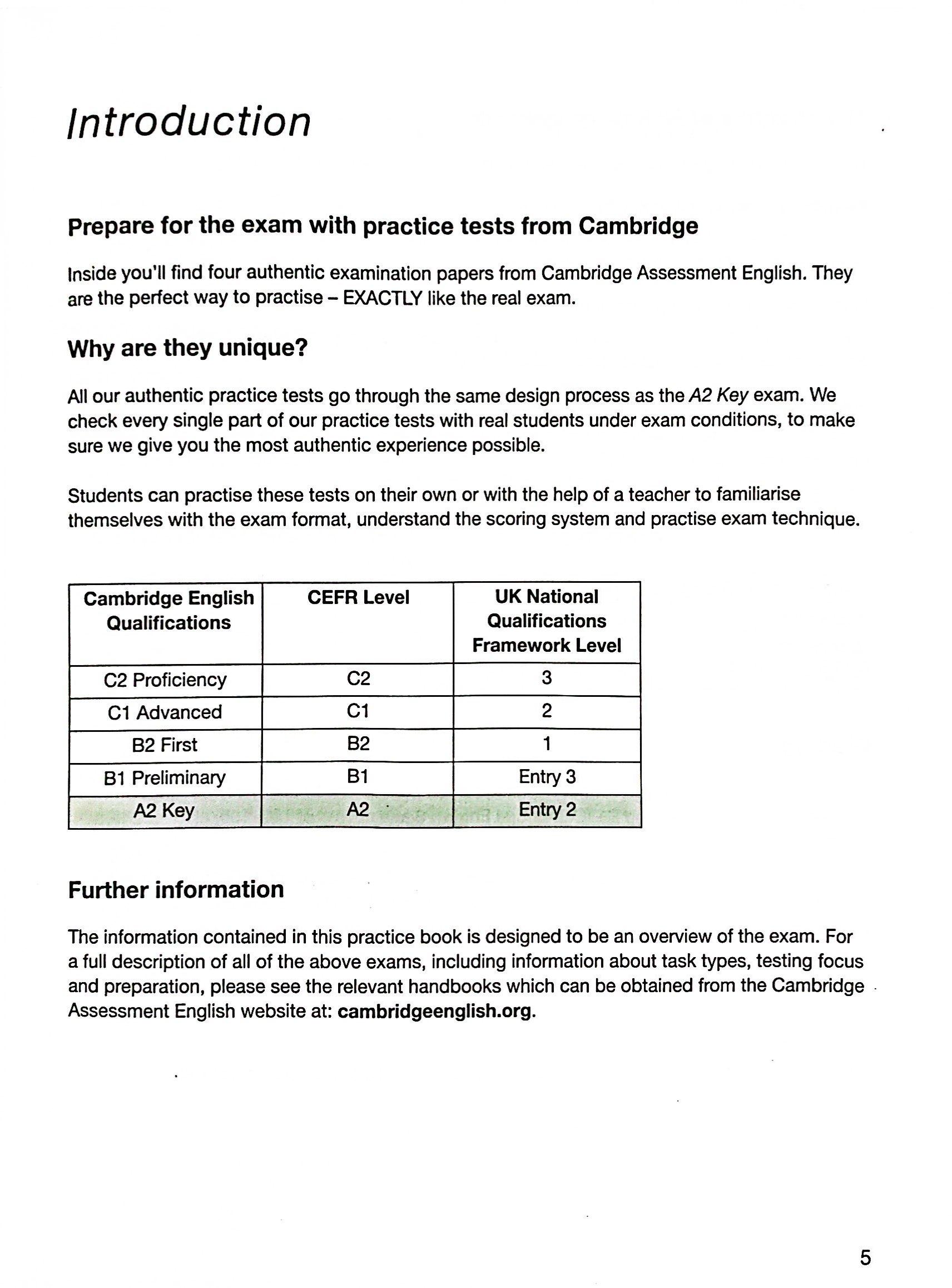 Authentic examination papers from Cambridge Assessment English provide perfect practice because they are EXACTLY like the real exam. Inside A2 Key for Schools for the revised 2020 exam you'll find four complete examination papers from Cambridge Assessment English. Be confident on exam day by working through each part of the exam and scoring system so you can familiarise yourself with the format and practise your exam technique.
