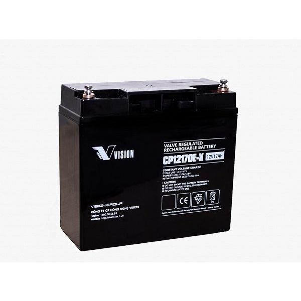 Ắc quy Vision 12V 17Ah cho độ bền bỉ và hiệu năng sử dụng cao nhất Thương hiệu: Vision Mã sản phẩm: CP12170E-X (12V – 17Ah) Xuất xứ: Việt Nam Đặc tính: Ắc quy khô,