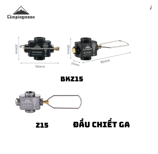 THÔNG TIN SẢN PHẨM - Thương hiệu: Campingmoon - Mã sản phẩm: Z15, Z11, Z10, BKZ15, BKZ11, BKZ10. - Chất liệu: hợp kim nhôm, đồng - Trọng lượng: ~39gr- Màu sắc: đen, bạc- Xuất xứ: Trung Quốc - Đặc điểm: Thông qua bộ chuyển đổi, bếp dã ngoại có thể sử dụng với bình mini thông thường, phù hợp với mọi loại bếp mini. Trọng lượng nhẹ, kích thước nhỏ, thuận tiện khi khi sử dụng ngoài trời, khả năng vận hành tốt.Với giá đỡ, giúp bình ga cố định, không lăn, đổ