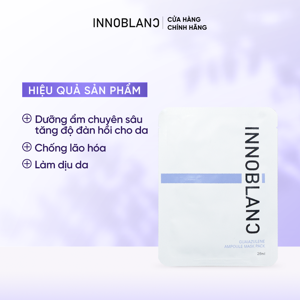 Mua tại TiktokMÔ TẢ SẢN PHẨM: Innoblanc – Ampoule Mask Pack là mặt nạ tinh chất dưỡng sâu giúp làm dịu da tức thì, dưỡng ẩm mạnh mẽ, cải thiện độ đàn hồi và độ sáng của da chỉ sau một lần sử dụng. Với công nghệ Ampoule đậm đặc, kết hợp các thành phần như Blue Guaiazulene, Niacinamide, Cica, 6 loại peptide, và chiết xuất thực vật, sản phẩm là lựa chọn lý tưởng cho làn da khô, xỉn màu, nhạy cảm và lão hóa. CÔNG DỤNG: