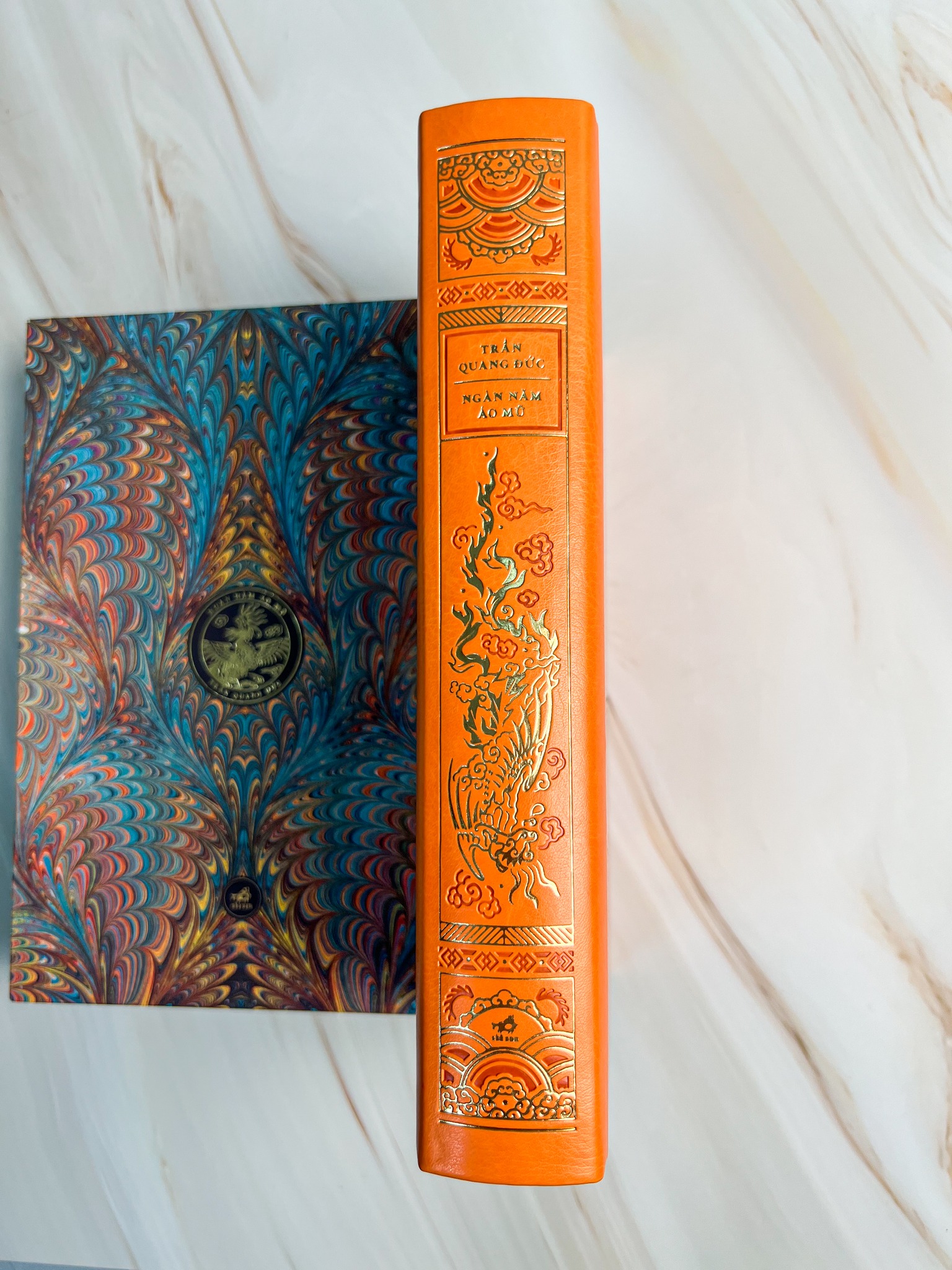 Mua tại Tiktok“Ngàn năm áo mũ”, công trình nghiên cứu công phu của Trần Quang Đức nhằm dựng lại bức tranh trang phục Việt Nam trong cung đình và ngoài dân gian trong khoảng một nghìn năm từ thời Lý đến thời Nguyễn (1009 - 1945). Về nội dung, ấn bản này đã có điều chỉnh và sửa chữa một số thông tin so với bản phổ thông in lần đầu năm 2013, đồng thời bổ sung một số ảnh chụp có chất lượng tốt hơn. QUY CÁCH Ấn bản cao cấp và giới hạn “Ngàn năm áo mũ” được thiết kế gáy theo concept liên hoàn với 2 cuốn “Phù thuật và tín ngưỡng An Nam” và “Bảo tàng Khải Định” (ấn bản chưa ra mắt). Quy cách cụ thể của cuốn này được mô tả như dưới đây.