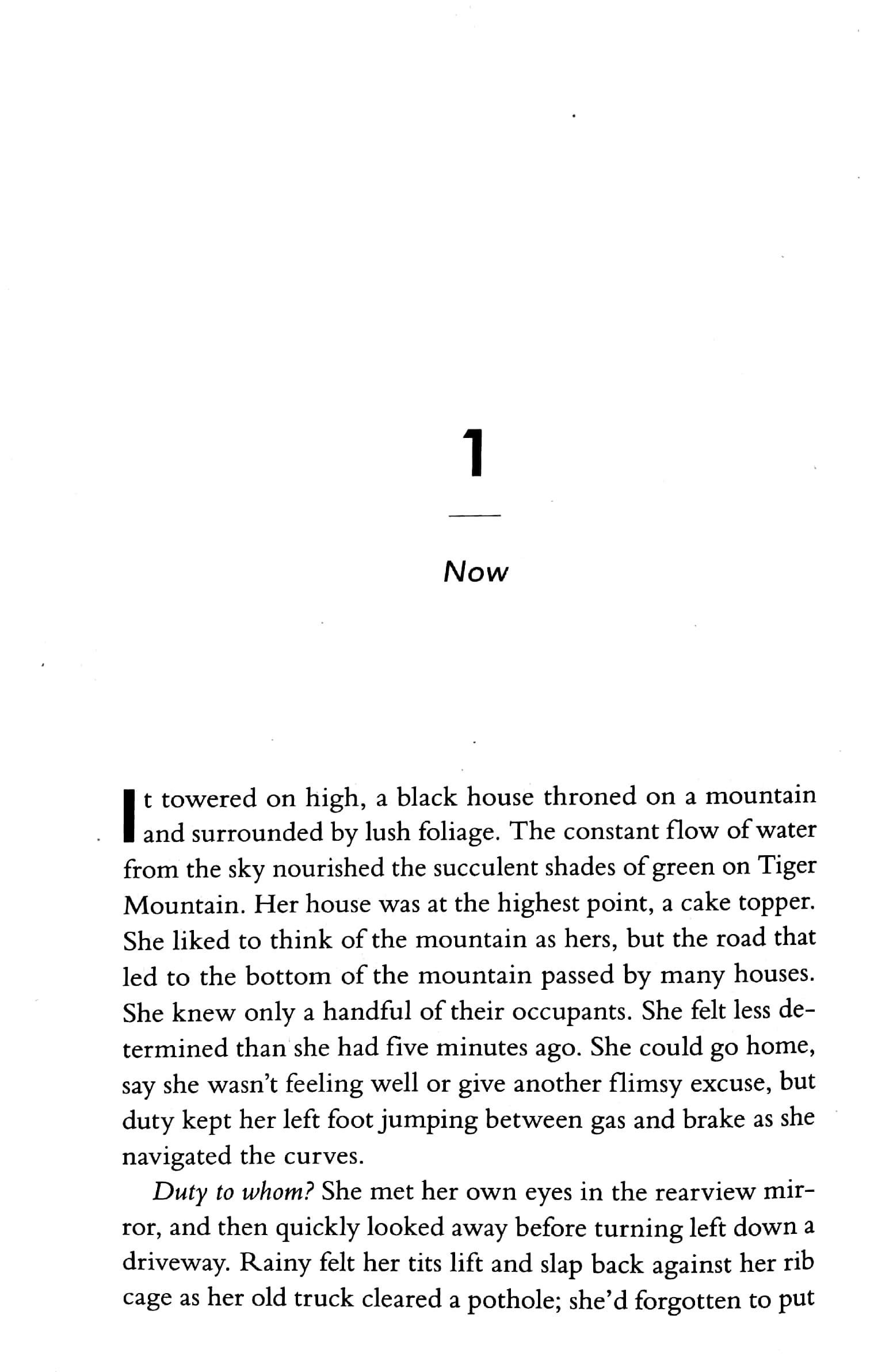 Lorraine—“Rainy”—lives at the top of Tiger Mountain. Remote, moody, cloistered in pine trees and fog, it’s a sanctuary, a new life. She can hide from the disturbing past she wants to forget.