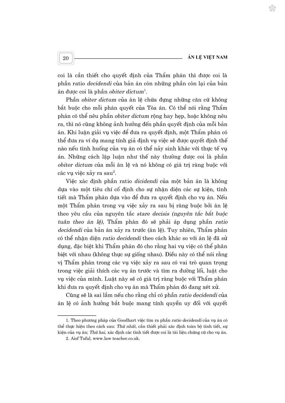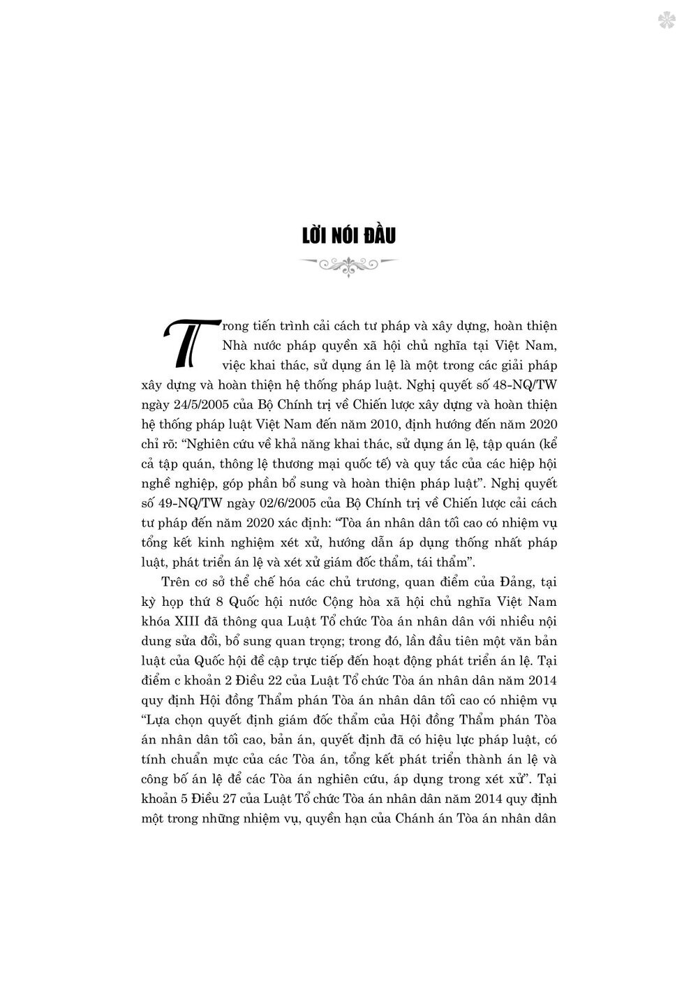 Cuốn sách là tài liệu quý trong việc tìm hiểu, nghiên cứu và viện dẫn án lệ cho các Thẩm phán, Hội thẩm và các chức danh tư pháp của Tòa án, cũng như bạn đọc quan tâm đến vấn đề này.