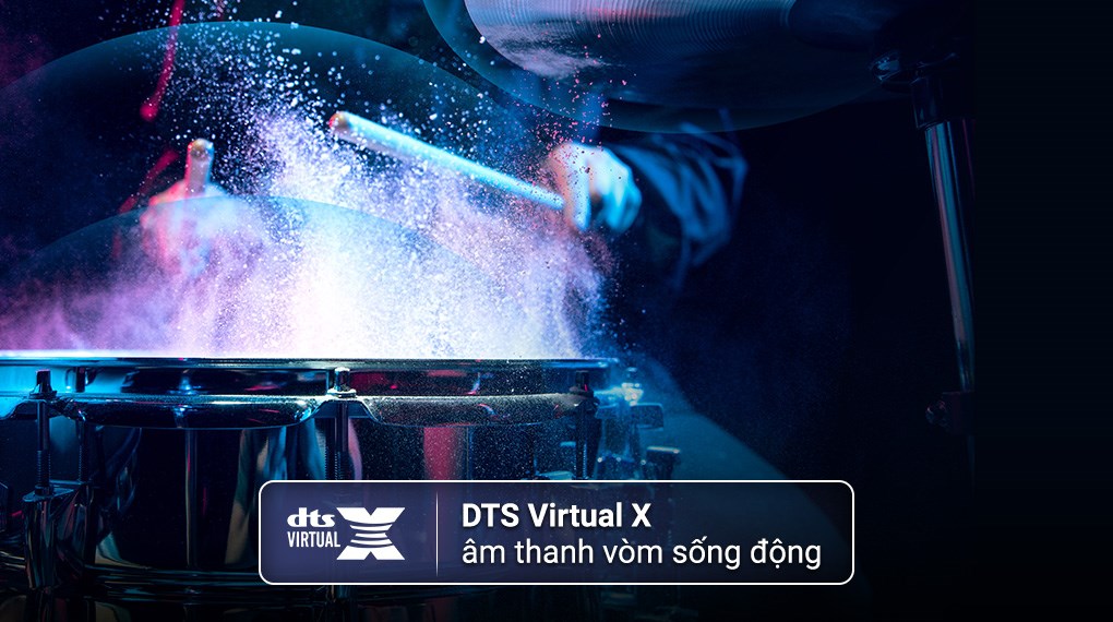 - Bạn sẽ đắm chìm trong không gian âm thanh vòm với công nghệ DTS Virtual X. Các đoạn hội thoại sẽ trong trẻo và dễ nghe hơn, mọi chi tiết âm thanh trong phim từ những tiếng súng đến những âm thanh lớn như các vụ nổ được tái hiện chi tiết và sống động hơn.