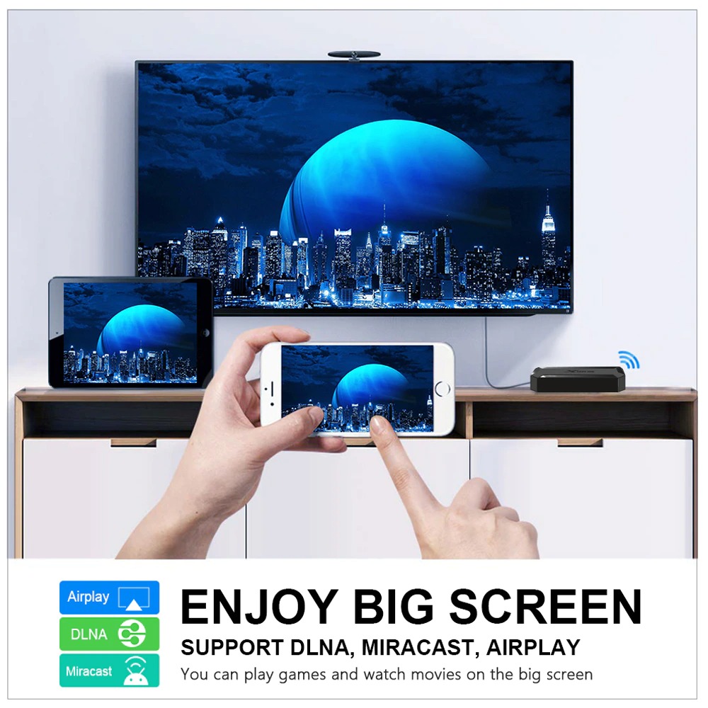 Android tivi X96Q có điều khiển giọng nói cử chỉ tay người dùng hỗ trợ tìm kiếm bằng tiếng việt Android 10 cài sẵn chương trình tivi truyền hình cáp, Phim HD miễn phí vĩnh