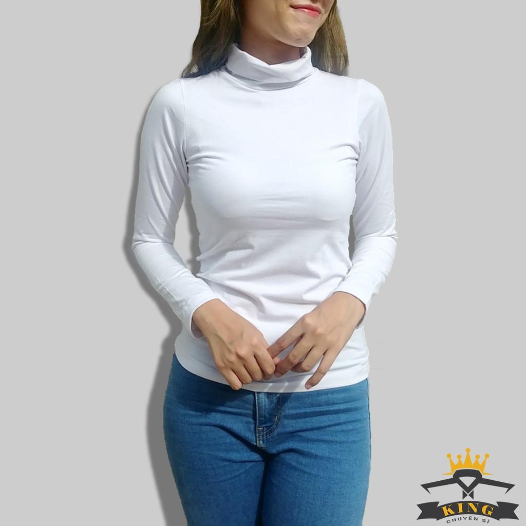 ✨Áo cổ lọ nữ tay dài dáng ôm màu đen trắng, Dáng ôm Chất COTTON cao cấp co giãn T14