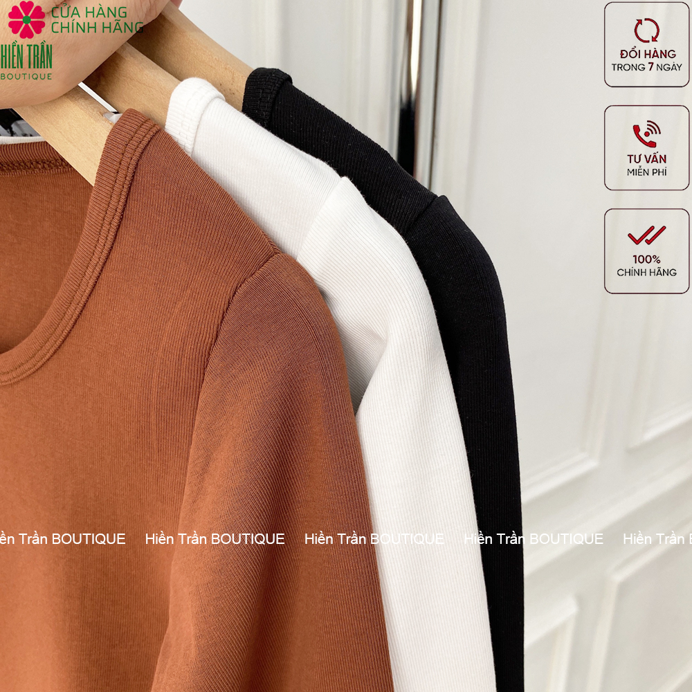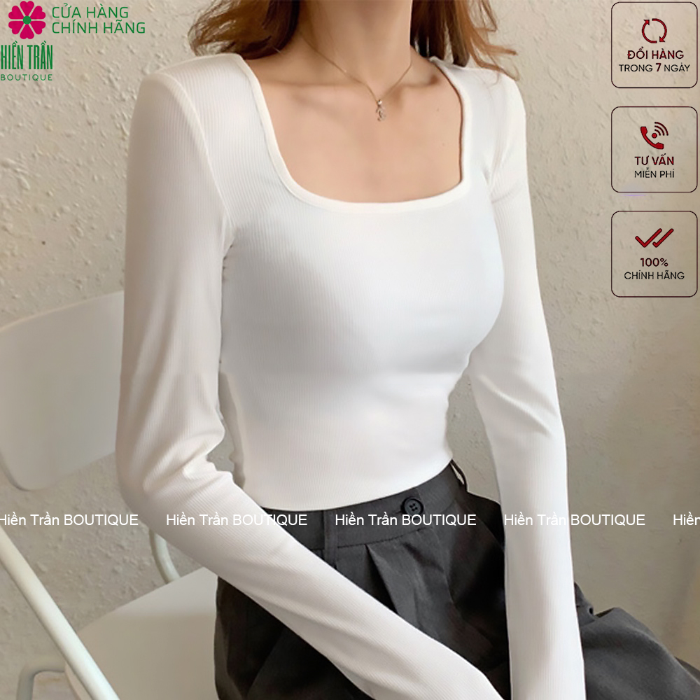 ✨ Áo croptop tay dài Hiền Trần BOUTIQUE cổ vuông vải thun ôm body crotop nữ cotton co giãn tốt