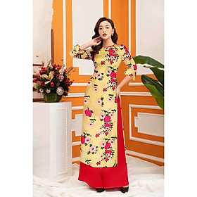 Thiết kế Áo dài nữ hồng vàng họa tiết hoa hồng cao cấp phong cách đường may tỉ mỉ. Áo thiết kế form vừa vặn giúp tôn được đường nét phong cách của các tính