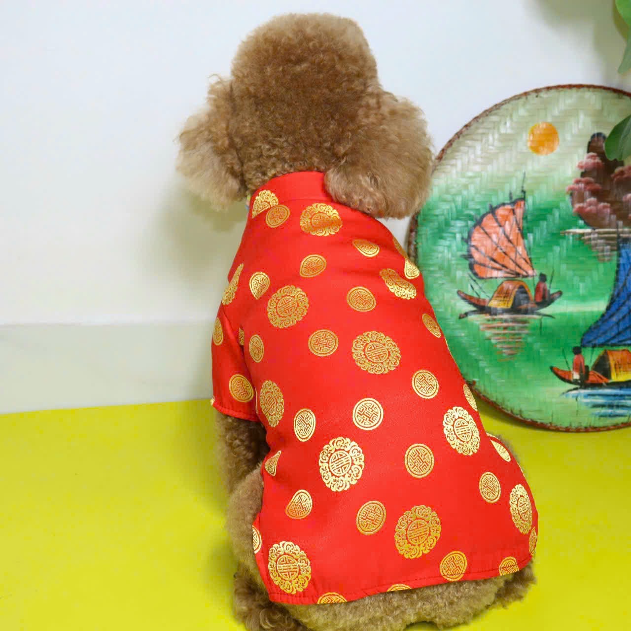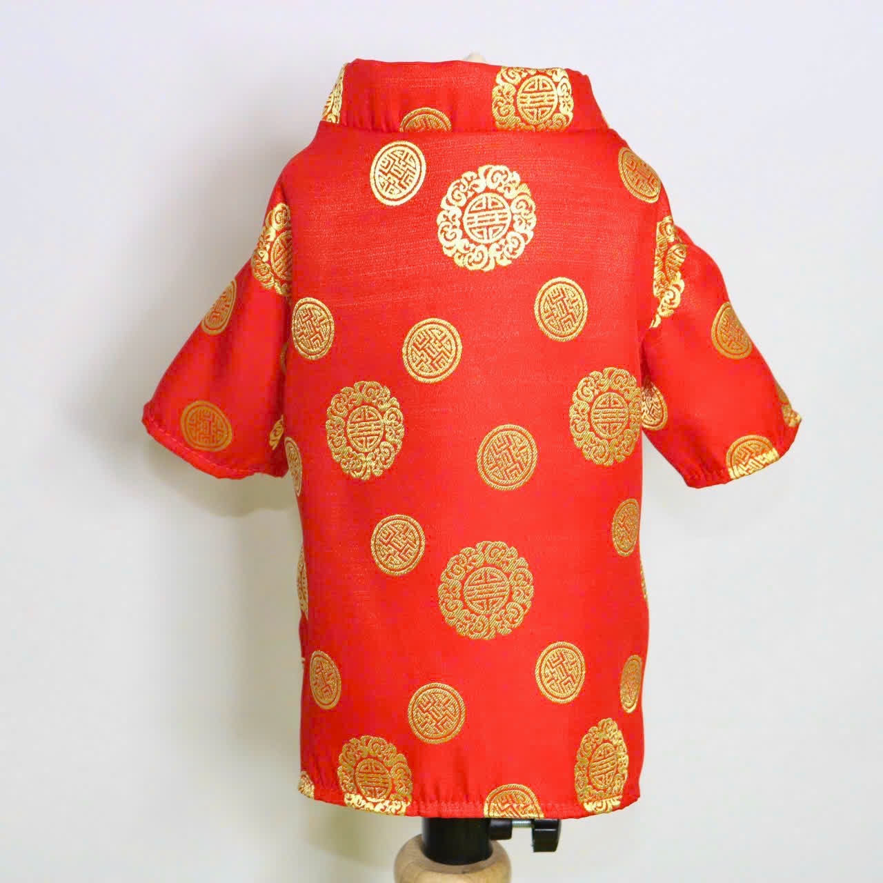ÁO DÀI TẾT GẤM THÁI CAO CẤP TỪ 0.5-15KG DÀNH CHO THÚ CƯNG CHÓ MÈO 1. Thiết kế : Áo Tết gấm thái cao cấp, mát, bền, đẹp, dễ thương. In hình đồng tiền dễ