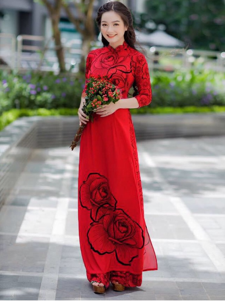 ÁO DÀI TRUYỀN THỐNG HỌA TIẾT HOA HỒNG KÈM QUẦN Điểm nổi bật Chất liệu : Tằm ý, quần có phối lưng chun Màu sắc : Trắng họa tiết, Tím họa tiết, Đỏ họa tiết