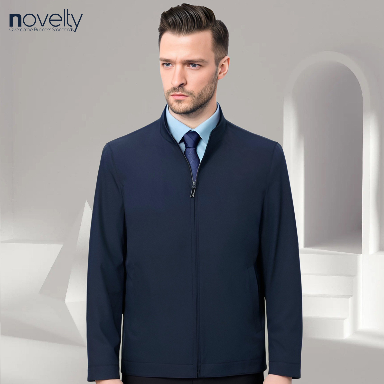 Áo khoác nam 2 lớp cổ cao NOVELTY màu xanh đen 1907182 giá chỉ 273K