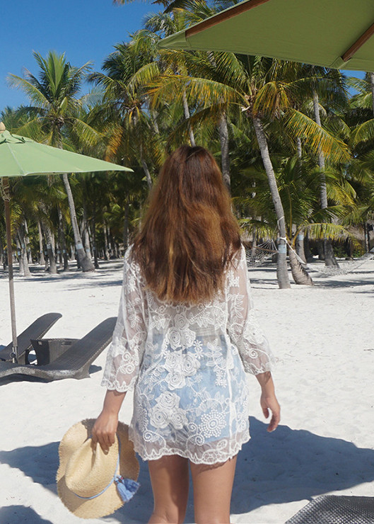 Khi diện những bộ bikini mà phối thêm chiếc áo choàng ren thì các nàng sẽ càng thêm sexy, trẻ trung, năng động và điệu đà lắm đó. Mẫu áo choàng ren với họa tiết