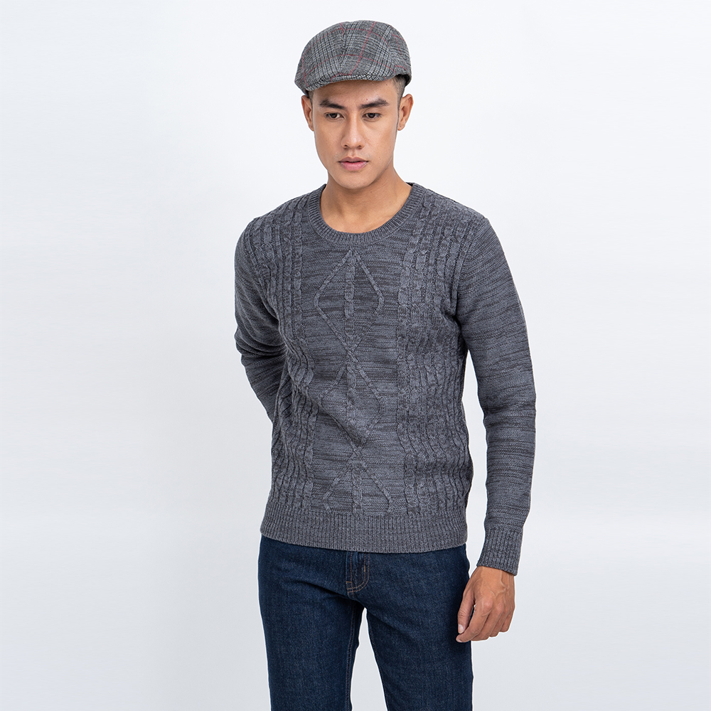 Áo len nam dài tay cổ tròn màu xanh đen NOVELTY 180583T  Áo len nam dài tay cổ tròn màu ghi đậm NOVELTY 180582T