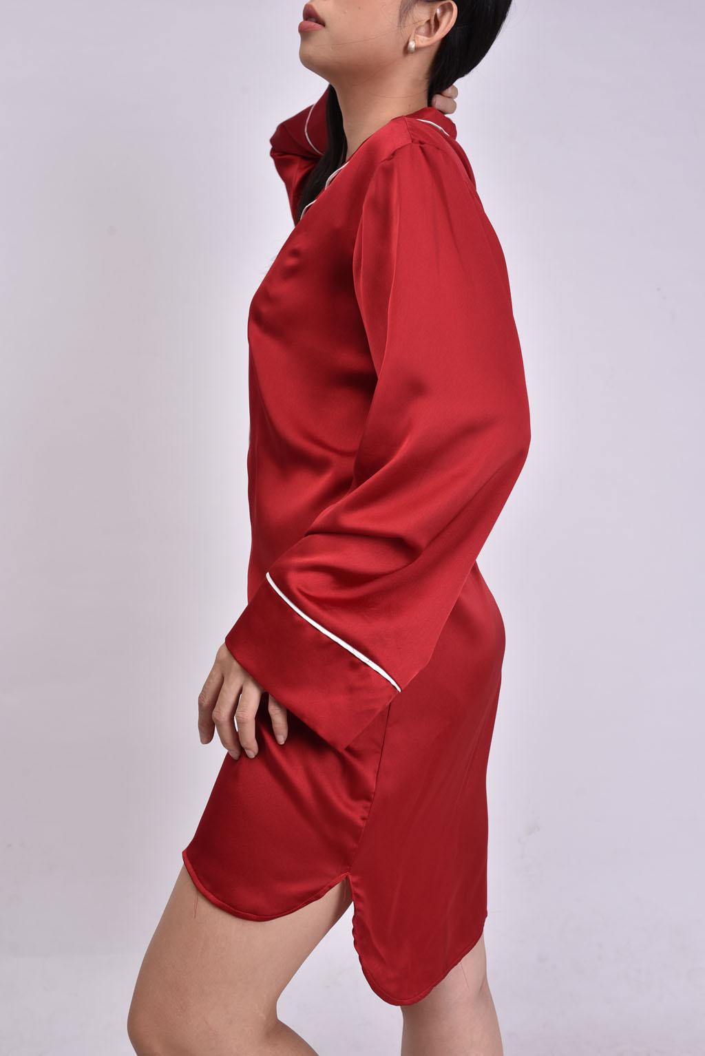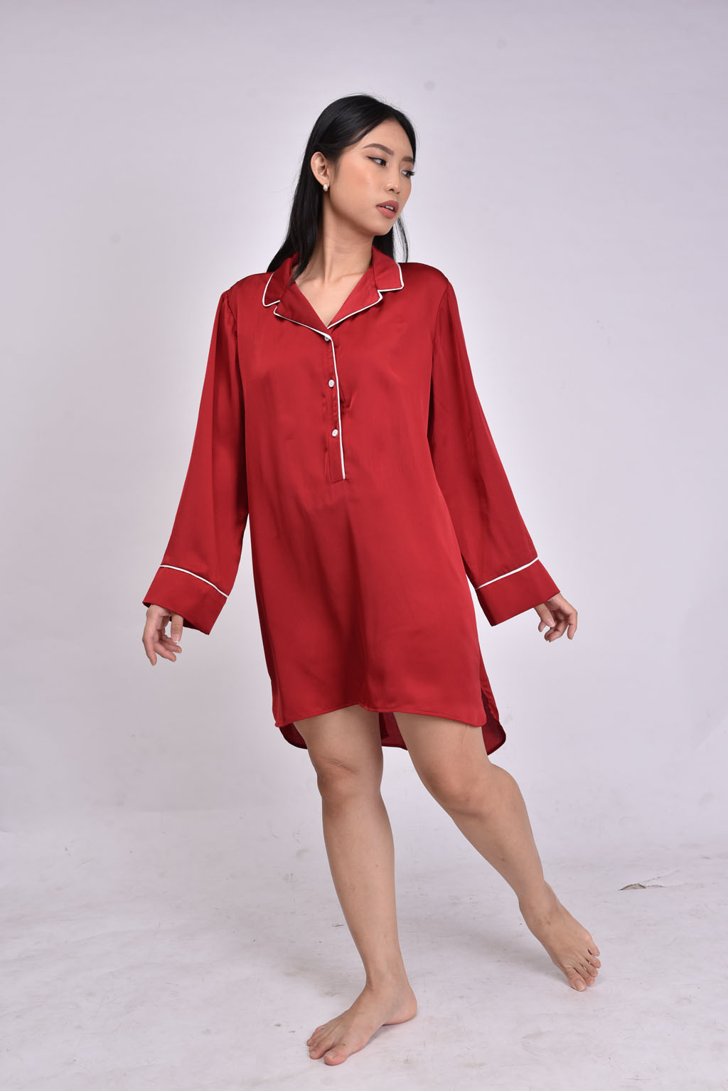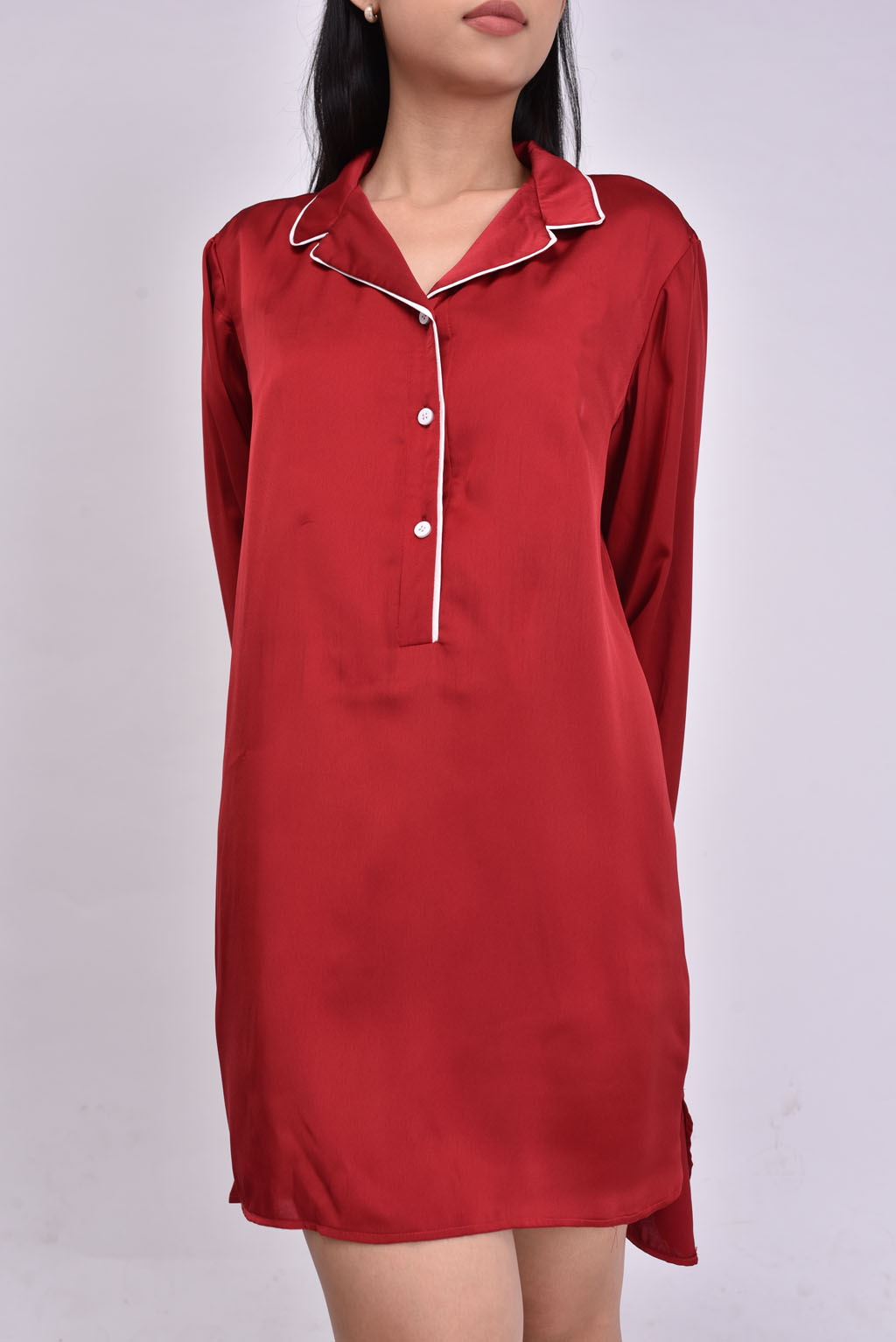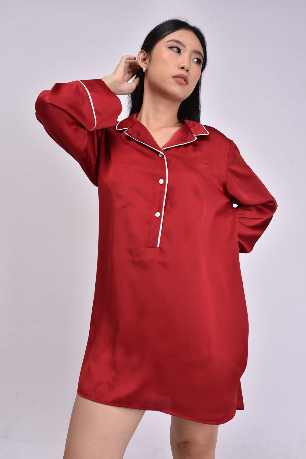 Mua tại TiktokÁo ngủ lụa pijama đỏ đô phối viền trắng sang chảnh, thời thượng