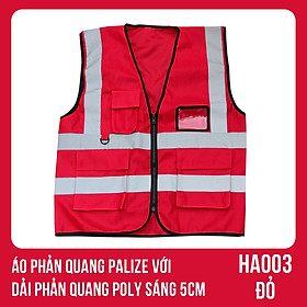 ✨Áo phản quang Palize với dải Phản quang Poly sáng 5cm màu ĐỎ - Mã HA003