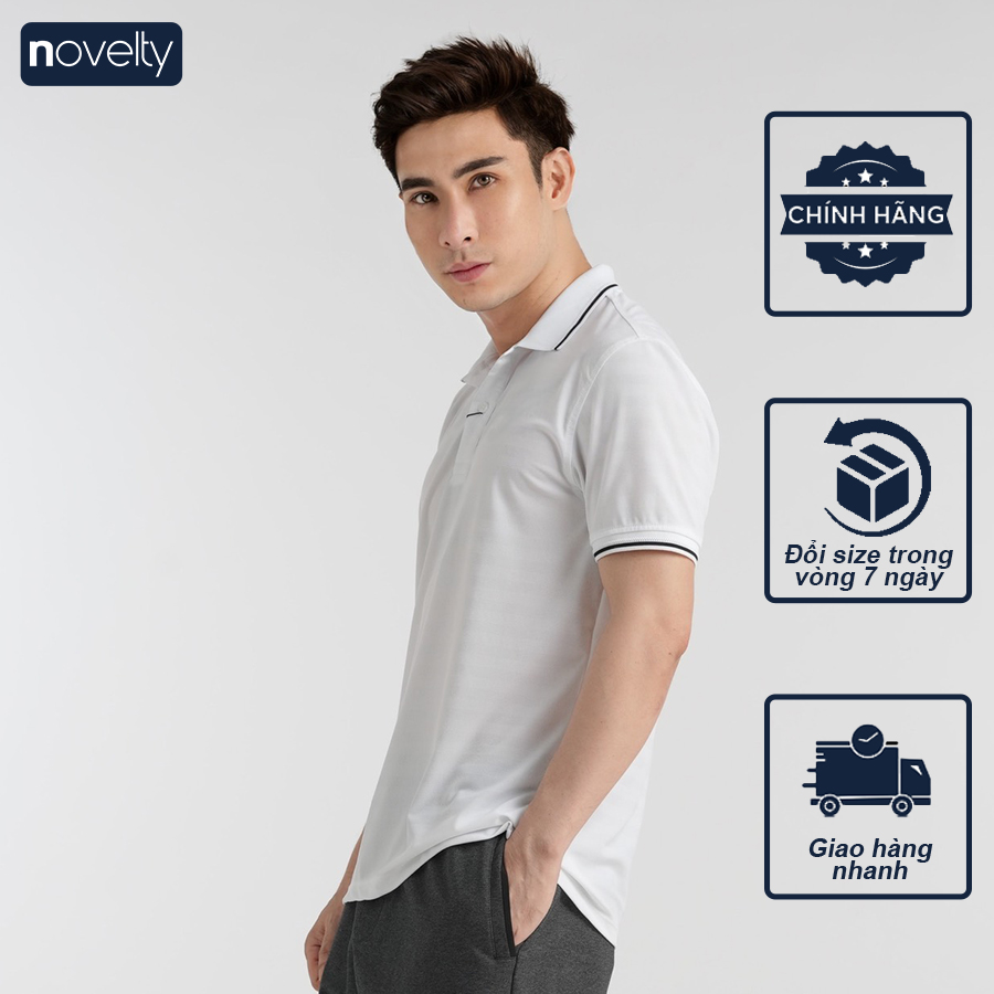 Áo thun nam Polo NOVELTY trơn màu cổ bo 210127N với thiết kế cổ bo dệt trơn có viền sọc mới lạ, đẹp mắt. Chất vải siêu nhẹ, mỏng mát nhưng không kém phần tinh