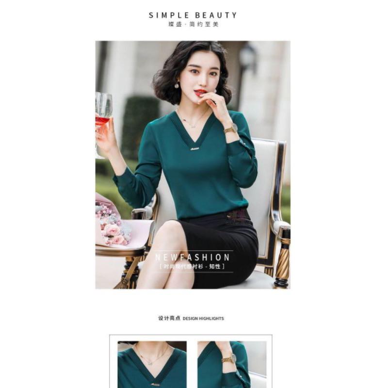 ÁO SƠ MI NỮ CỔ V CÁCH ĐIỆU TAY DÀI CAO CẤP