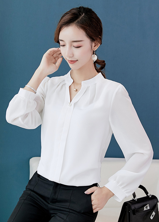 Kiểu dáng: áo sơ mi công sở cổ tim thanh lịch, phối nút duyên dáng, tay dài cài nút phong cách phù hợp công sở, công tác, đi dạy, đi học, đi tiệc Chất liệu: