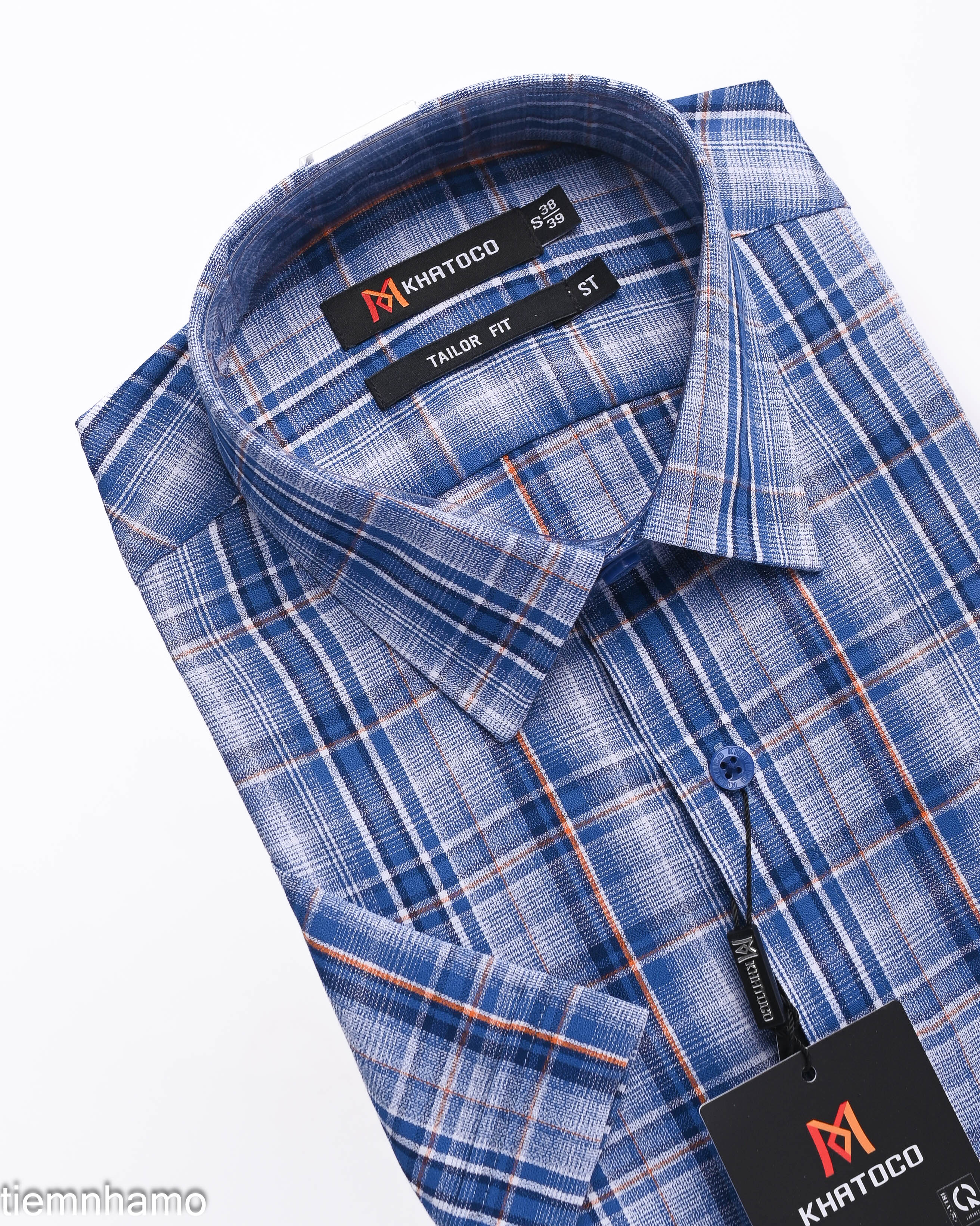 Sơ mi ngắn tay xanh nhạt caro to GD612
