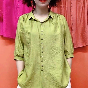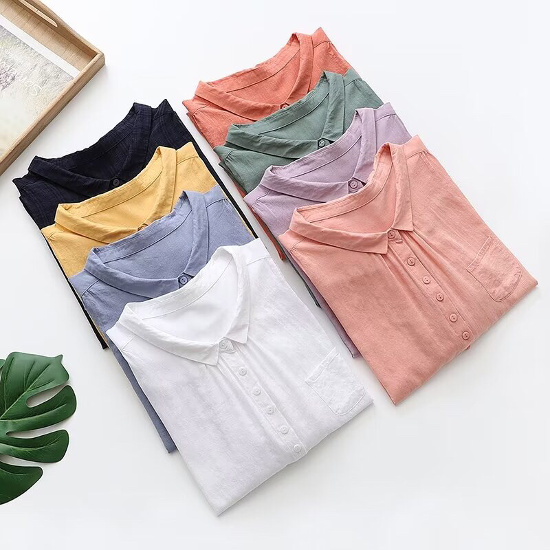 - Tên sản phẩm: Áo sơ mi kiểu tay lỡ cổ đức, áo kiểu nữ dễ thương, chất liệu Đũi tơ mềm mát, thấm hút mồ hôi.