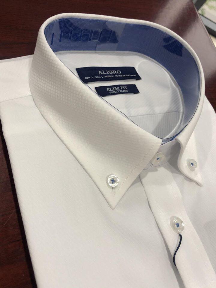 ✨Áo sơ mi nam dài tay ALIGRO 100% chất cotton cổ bẻ dáng ôm body, màu trắng phối cổ ALGS189