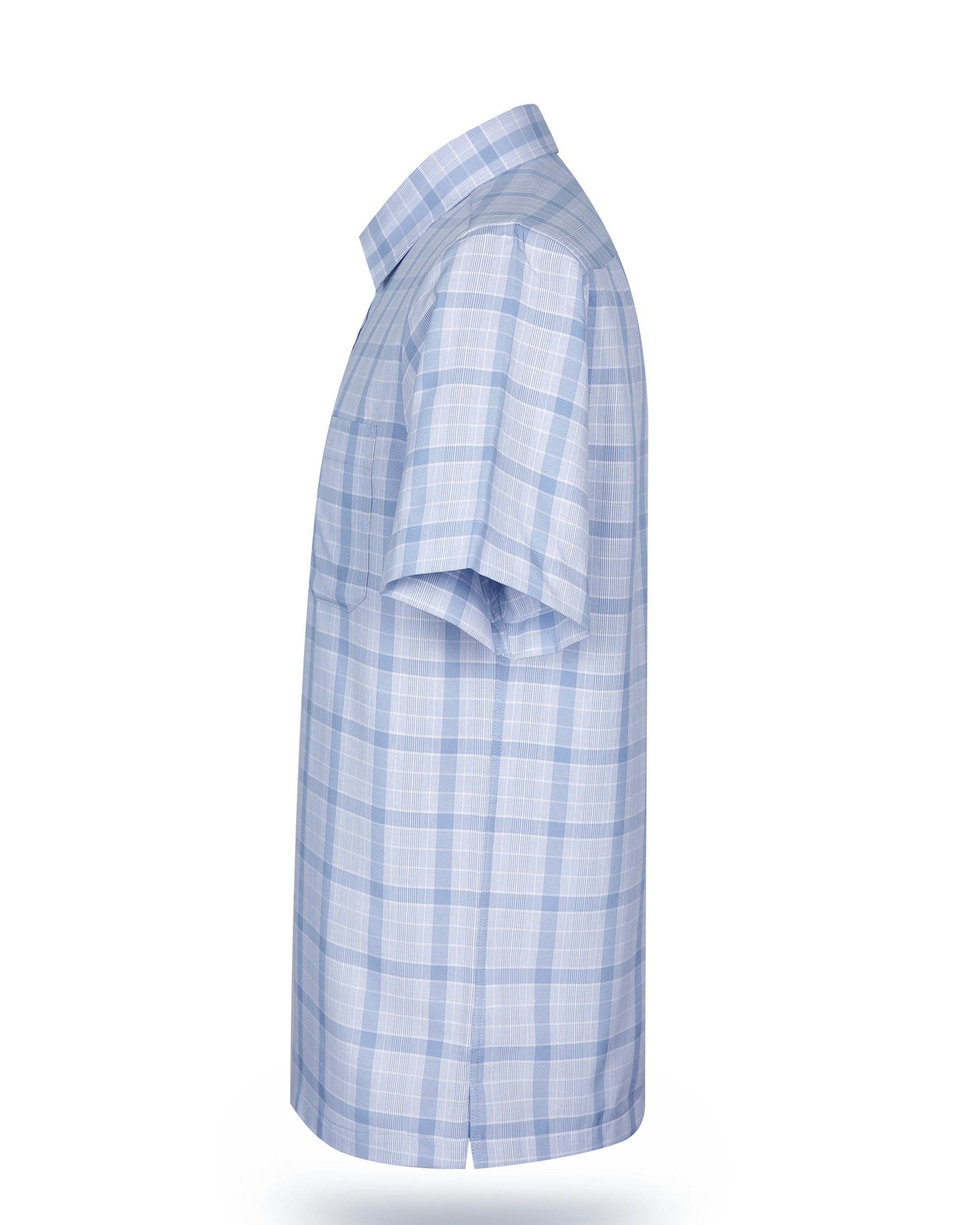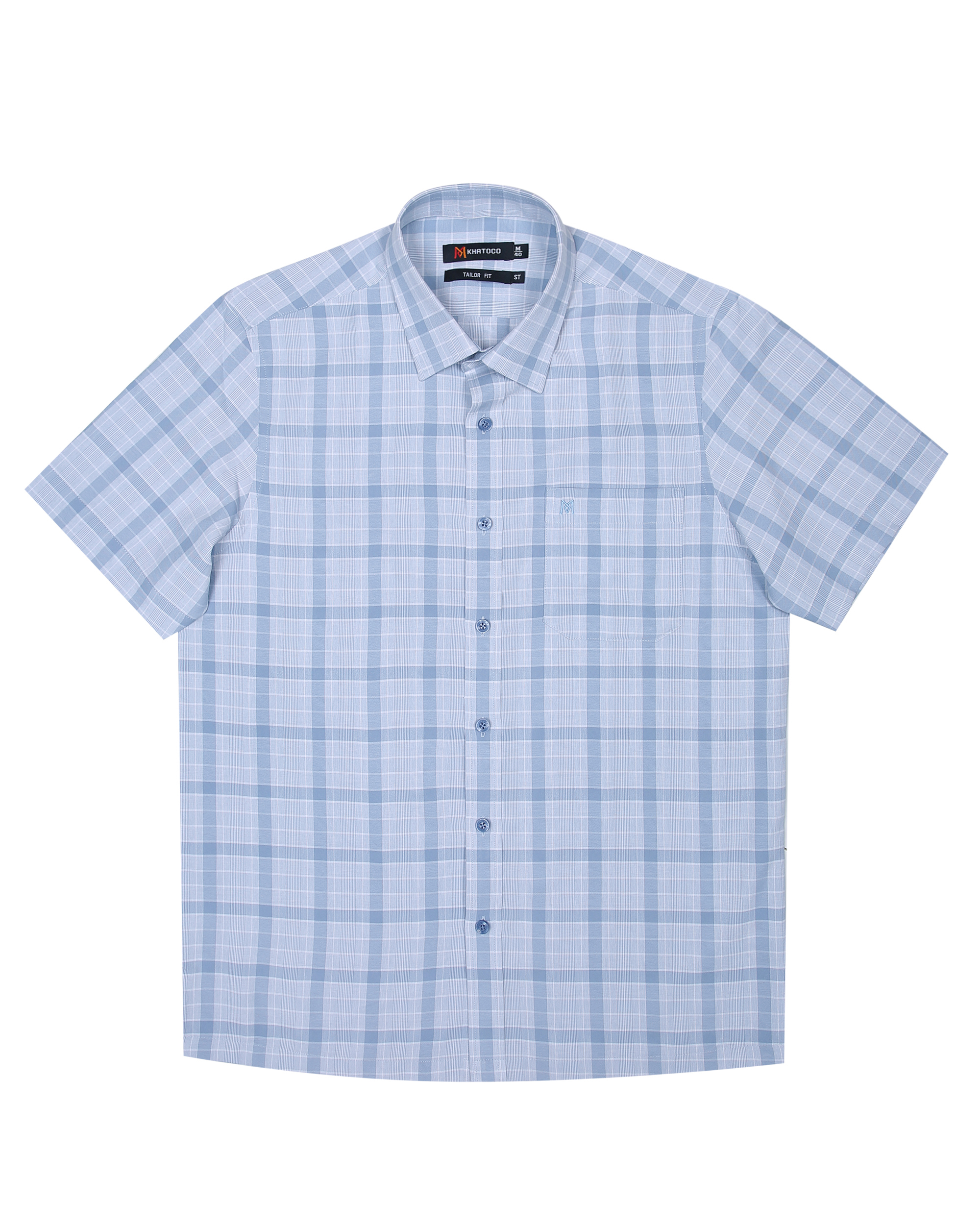 Áo sơ mi nam tay ngắn lai ngang – Khatoco - Mã hàng: A1MN538T2 - Chất liệu: 75% Polyester + 22% Viscose (Bamboo) + 3% Spandex → Vải mềm mại, thoáng mát, co giãn nhẹ,