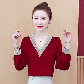 ✨Áo Sơ Mi Phi Lụa Thanh Lịch Cổ Tim Viền Ren TP10