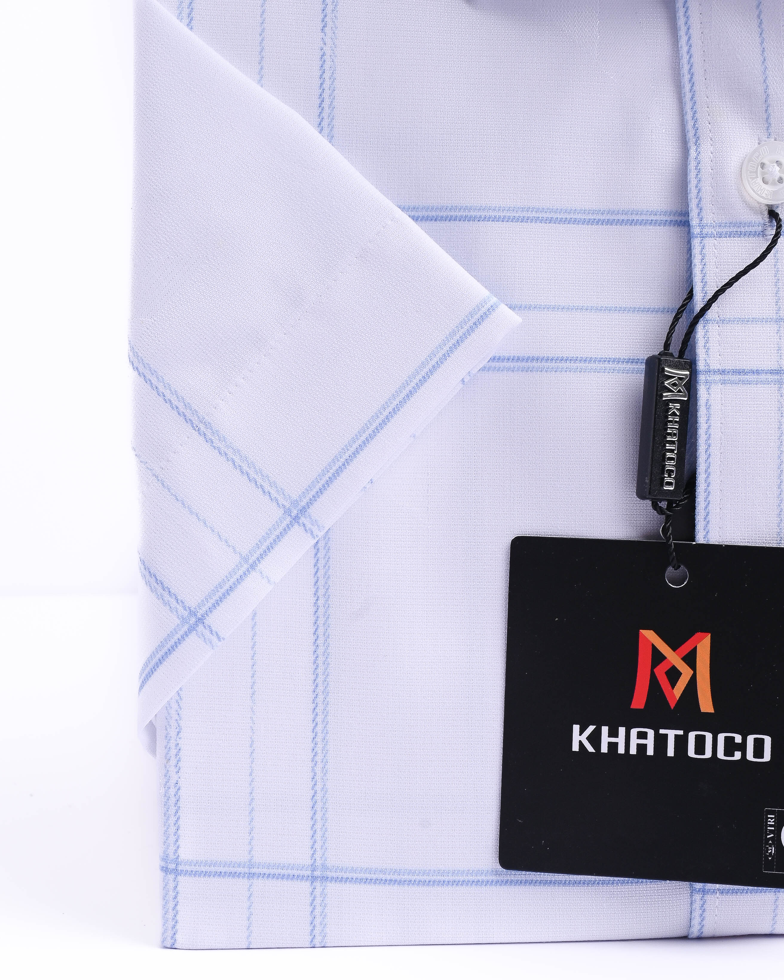 Áo sơ mi nam tay ngắn lai ngang – Khatoco - Mã hàng: A1MN538T2 - Chất liệu: 75% Polyester + 22% Viscose (Bamboo) + 3% Spandex → Vải mềm mại, thoáng mát, co giãn nhẹ,
