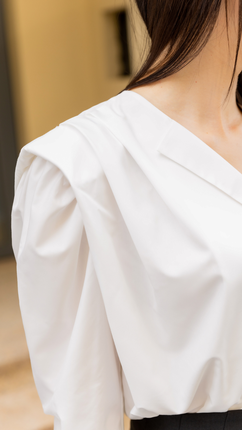 ✨ Áo sơ mi vai chờm có đệm Bianca thiết kế cao cấp WHITE CHIC