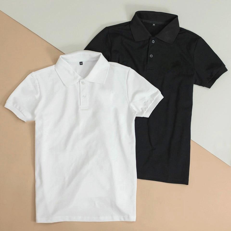 Áo Polo Vải Cá Sấu 4 Chiều Thấm Hút Seventy Seven 19 Màu Đen Trắng