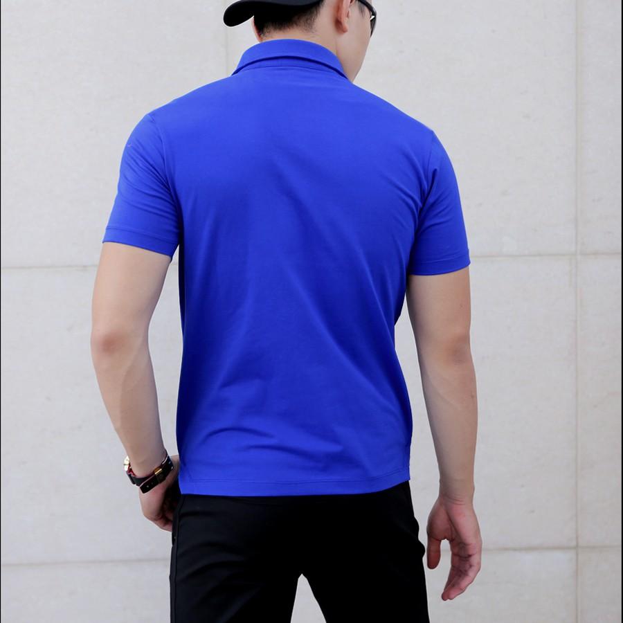 Áo thun cá sấu nam vải cotton co giãn 4 chiều Màu Xanh Dương