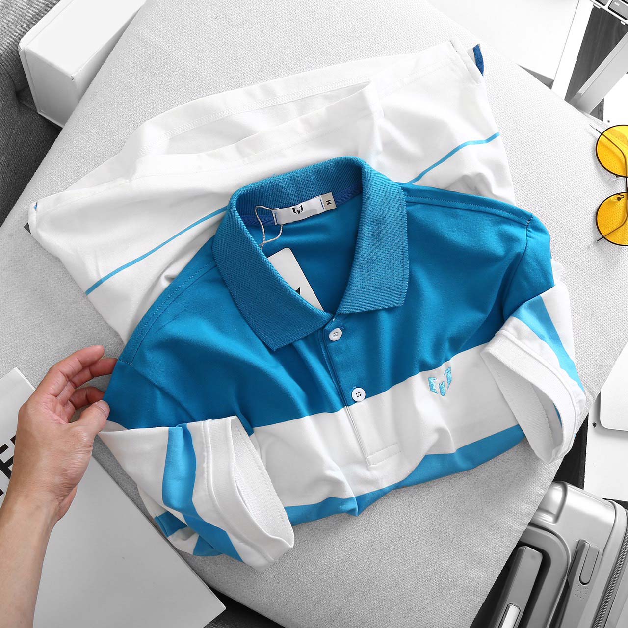 ✨ÁO THUN NAM TAY NGẮN CÓ CỔ PHỐI SỌC ĐỘC ĐÁO LOGO THÊU LỊCH LÃM - LZPS144